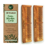 Greenloverstore 100% Pure Oil Treated Neem Wooden Dual Side Comb Pack Of 2